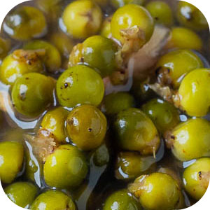 Pickled black peppercorns are whole peppercorns preserved in a brine or vinegar solution. This pickling process imparts a tangy flavor to the peppercorns, making them a popular condiment in some cuisines.
