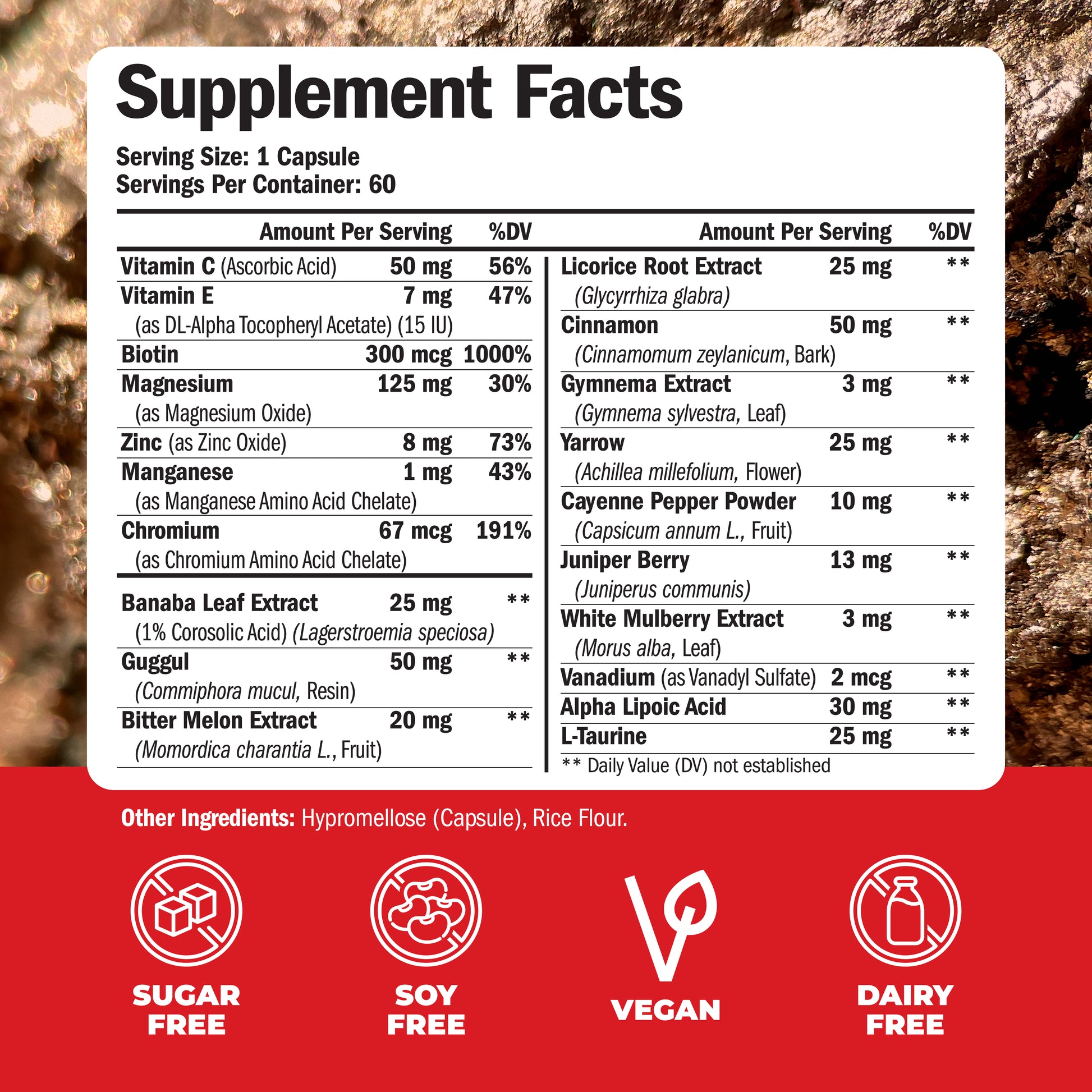 - Balance your glucose metabolism and energy with 20 ingredients specially chosen to support your metabolic function, including Biotin, Vanadium, Alpha Lipoic Acid, and Chromium.*