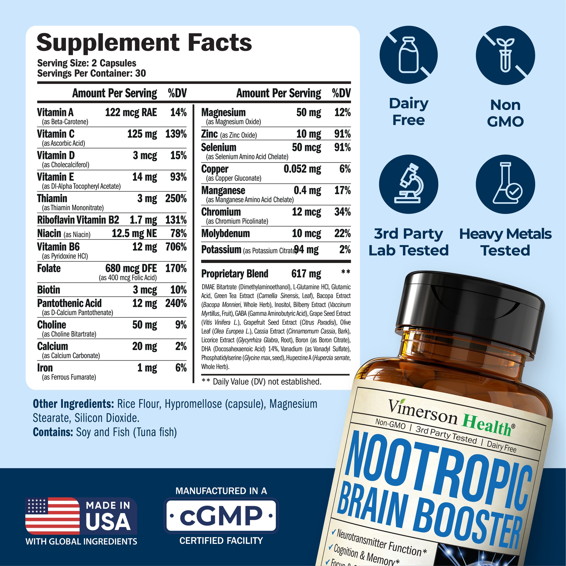 Made in the USA in a GMP-Certified Facility with Globally-Sourced ingredients. Non-GMO, Vegan, Gluten-free, Dairy-Free and Sugar-Free. A convenient flip-top bottle for on-the-go nutrition.